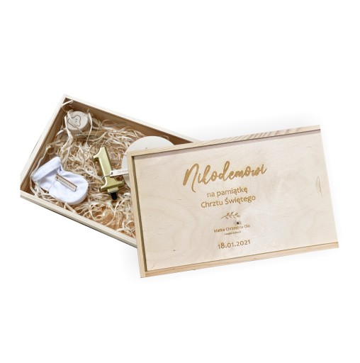 PUDEŁKO DREWNIANE PAMIĄTKA NA CHRZEST ŚWIĘTY Z INDYWIDUALNYM GRAWEREM