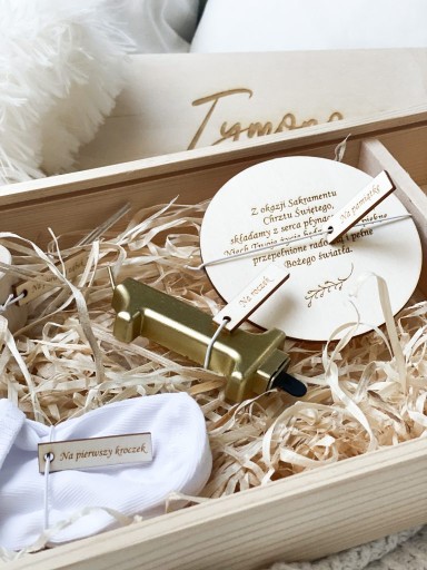 - Imię dziecka na pudełku (np. Nikodemowi),