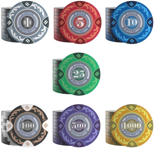 - Zestaw zawiera 500 designerskich żetonów do pokera, waga jednego chipu: ok. 12 g.