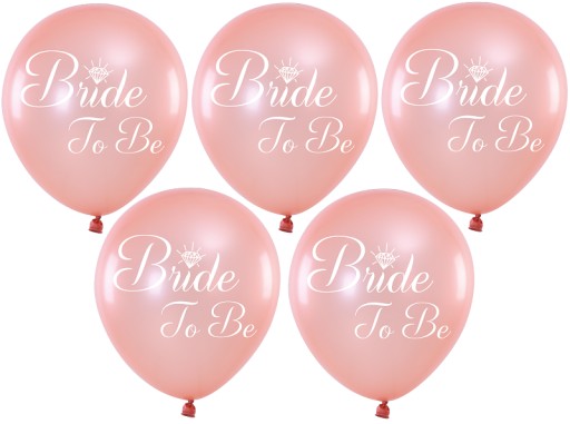 Balony dekoracyjne na Wieczór Panieński w kolorze różowe złoto z nadrukiem "Bride to be" - 5 sztuk