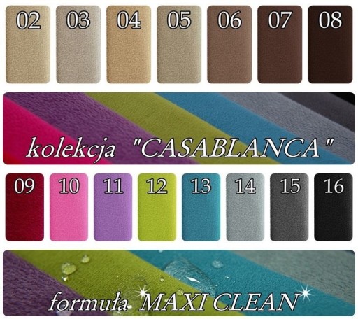 - Tkanina Casablanca - zmywalna, nie wchłania wody (dopłata 200 zł).
