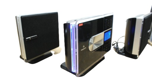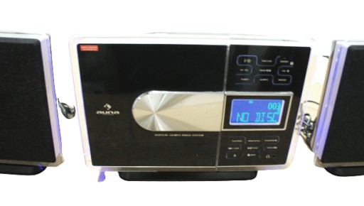 - zestaw stereo z pionowym odtwarzaczem CD / Mp3, radiem FM i podwójnym alarmem