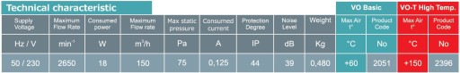 Wentylatory kanałowe serii VO przeznaczone są do montażu w ciągach wentylacyjnych o przekroju okrągłym, w systemach instalacji DGP ogrzewania kominkowego, dystrybucji gorącego czystego powietrza, wyciągu gorącego powietrza np. z okapów kuchennych za filtrem powietrza, nawiewu powietrza do pomieszczeń.