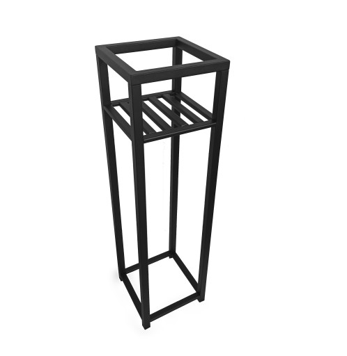 - Wymiary 22x22cm Wysokość 80cm, wykonany z profila stalowego 20x20mm o grubej ściance 1,5mm, półka z profila 20x10mm osadzona 14cm niżej niż górna krawędź