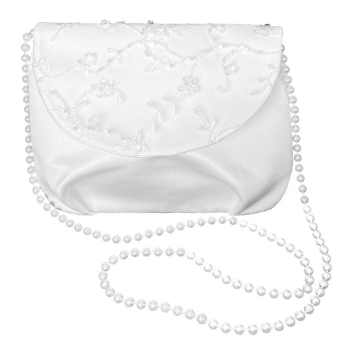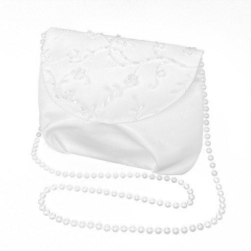 Torebka wykonana z białej, półmatowej satyny.