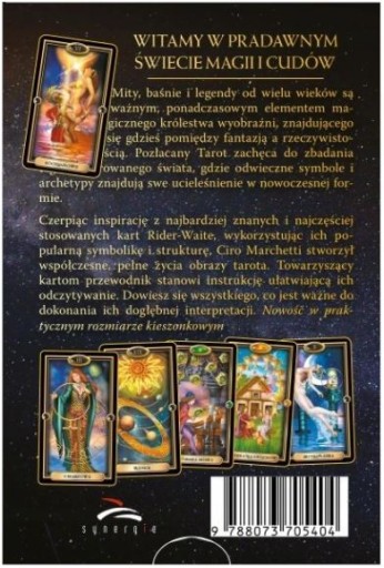 Pozłacany Tarot zachęca do zbadania zaczarowanego świata, gdzie odwieczne symbole i archetypy znajdują swe ucieleśnienie w postaciach jasnowłosych dziewic, odważnych rycerzy i obdarzonych mądrością mistyków.