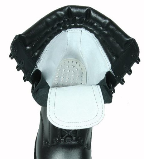 Wysoko założony nosek co zapobiega w czasie użytkowania mechanicznym uszkodzeniom skóry na nosku.
