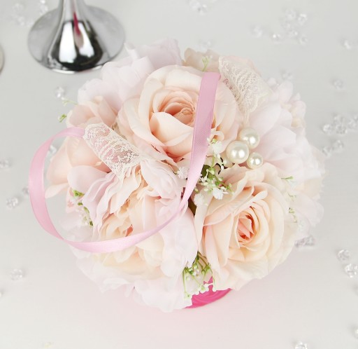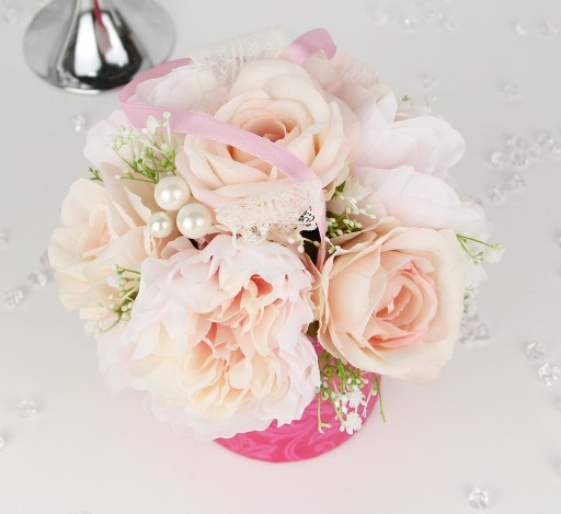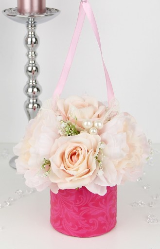 - na górze widoczna jest jasno-różowa satynowa wstążka, która służy jako uchwyt, a po wręczeniu bukietu można ją schować pomiędzy kwiaty,