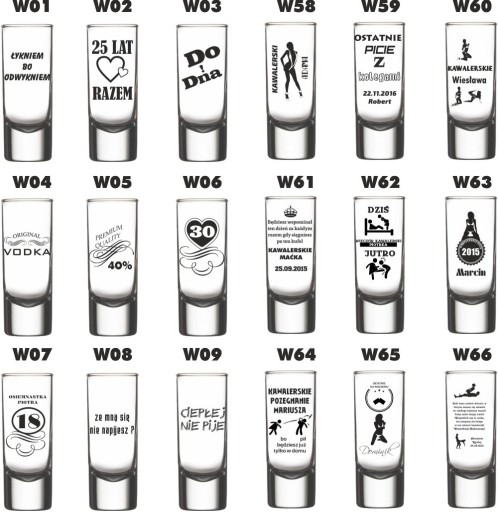Po zakupie prosimy o informacje, który wzór grawera ma się znaleźć na kieliszku.