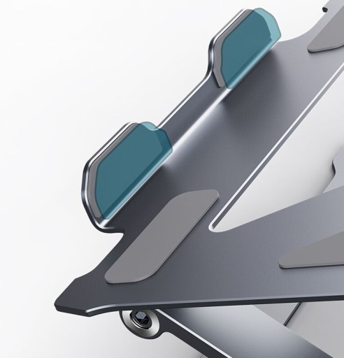 - Silikonowe podkładki antypoślizgowe zamontowane zarówno na podstawie urządzenia, jak i na podstawce stabilizującej laptop.
