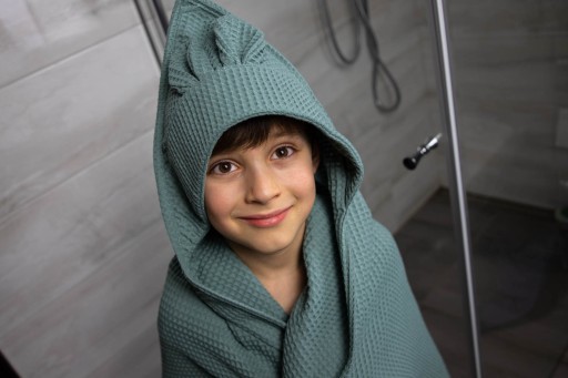 Ręcznik kąpielowy to obowiązkowa pozycja w domu każdego rodzica. Wafelkowy ręczniczek z kapturkiem, chroni główkę Twojej pociechy, jest mięciutki i chłonny, dzięki wykonaniu z certyfikowanej bawełny jest przyjazny dla skóry dziecka – sprawdzi się doskonale podczas codziennych kąpieli, ale także na plaży czy na basenie. Można wykorzystać go także jako kocyk lub mata do zabawy.