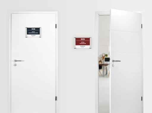 Prezentowana tabliczka przydrzwiowa w formacie A4 stanowi praktyczny element systemu oznakowania pomieszczeń biurowych, szkolnych, szpitalnych czy też instytucjonalnych. Dzięki zastosowaniu w niej profilów zatrzaskowych, możliwa jest szybka i sprawna wymiana znajdujących się w niej informacji. Do wykonania oferowanych tabliczek użyto wysokiej jakości aluminium oraz plastiku PP, co wpływa nie tylko na ich trwałość, ale również na estetyczny wygląd. Przedni panel tabliczki został wyposażony w folię antyrefleksyjną o grubości 0,5 mm, która pełni funkcję zabezpieczającą.