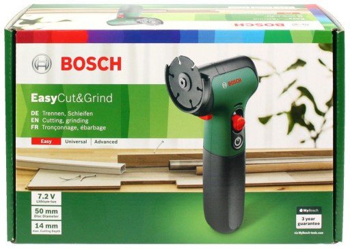 Szlifierka kątowa model EasyCut&Grind firmy BOSCH to bardzo lekkie i poręczne urządzenie akumulatorowe. Przeznaczona do cięcia blachy, rur, kątowników, płaskowników oraz elementów zbrojeniowych jak również do obróbki metali kolorowych. Przy użyciu odpowiedniej tarczy można łatwo i szybko ciąć glazurę i terakotę.
