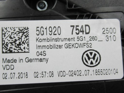 VW GOLF VII GTE LICZNIK ZEGARY EUROPA 5G1920754D 5G1920754D