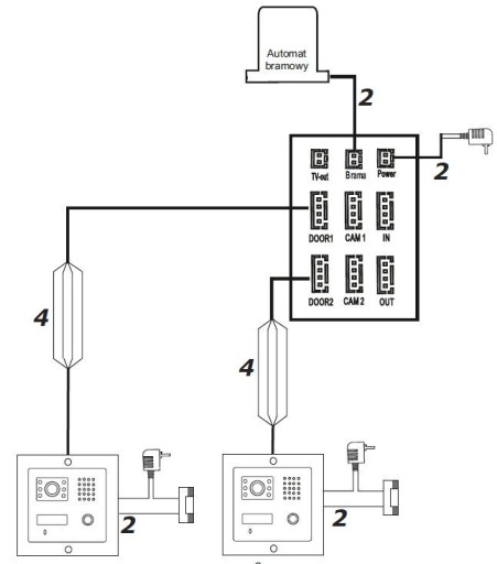 - stacje bramowe łączy się 4-żyłowym przewodem do monitora (każda oddzielnie)