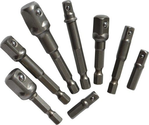 - redukcje do nasadek do wkrętarki 8 szt o rozmiarach 1/4"; 3/8"; 1/2"