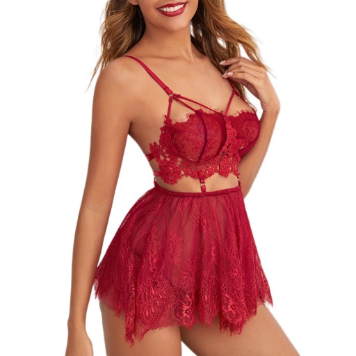 ZMYSŁOWA KORONKOWA KOSZULKA NOCNA ZE SPÓDNICZKĄ I STRINGAMI GRATIS