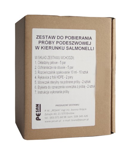 ZESTAW DO POBIERANIA PRÓBY PODESZWOWEJ W KIERUNKU SALMONELLI Z PIĘCIOMA PARAMI STERYLNYCH OKŁADZIN