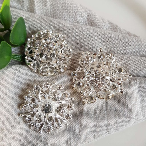 Piękne broszki w kształcie kwiatka wykonane zostały z wielką starannością. Świetnie nadają się do aranżacji stołu w stylu glamour oraz jako przypinka np. do torebki.