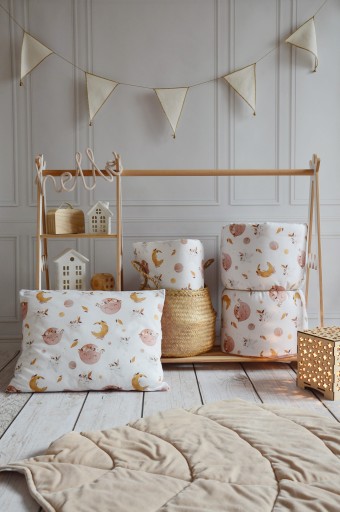 Produkt szyty ręcznie, z najwyższą starannością i dbałością o szczegóły. Idealnie sprawdzi się jako prezent na baby shower, chrzest lub urodziny. Otulacz można skompletować z innymi produktami marki Migotka tworząc oryginalną aranżację pokoju dziecięcego.