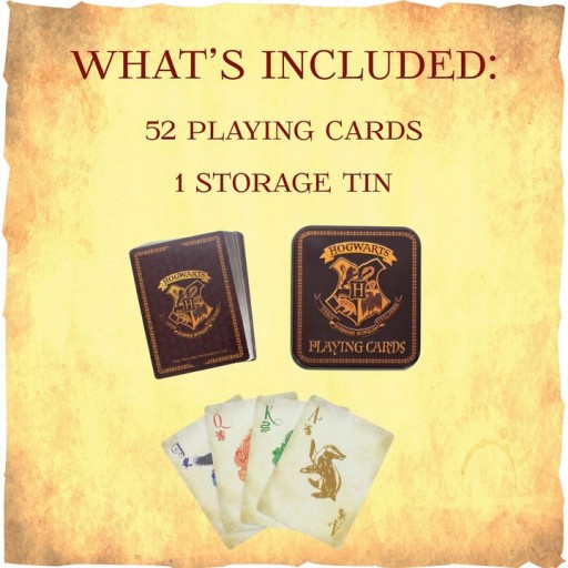 Zainspirowana czterema domami Szkoły Magii i Czarodziejstwa Hogwart, talia zawiera szatę graficzną w projektach Gryffindoru, Hufflepuffu, Ravenclawu i Slytherinu, dzięki czemu jest to idelny prezent dla każdego fana słynnego czarodzieja na kreatywne spędzanie czasu.