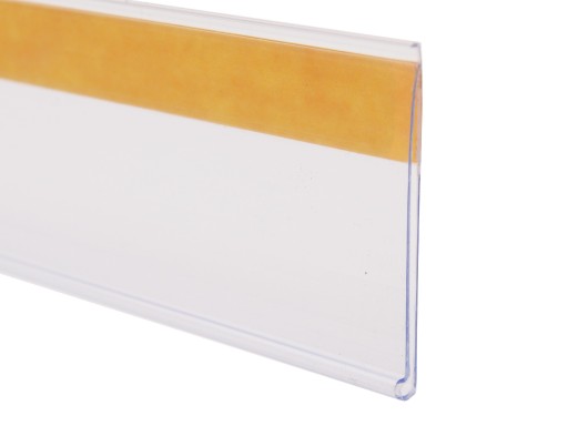 Listwa cenowa o długości 125 cm . Dostępna jest w 9 kolorach do wyboru: żółtym, bezbarwnym, białym, zielonym, pomarańczowym, niebieskim czerwonym, brązowym oraz czarnym.