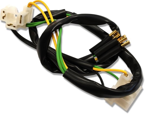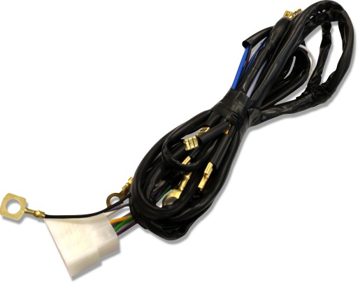 Wszystkie podzespoły w zestawie (tj.: skrzynka bezpiecznikowa, kostki lub końcówki żeńskie i oczkowe), są już podłączone do przewodów elektrycznych.