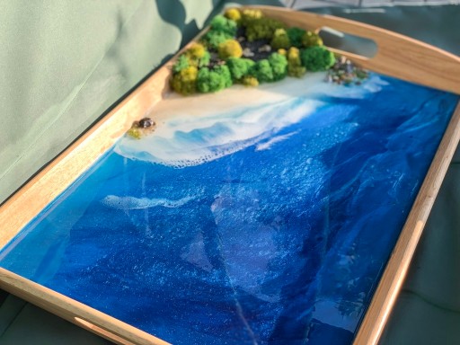 - stół blat i ozdoby z żywicy