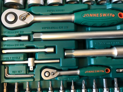 Kpl. kluczy nasadowych 94 części 1/2" + 1/4" Jonnesway + zestaw kluczy trzpieniowych 40szt