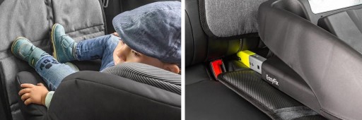 Dzięki specjalnym wycięciom mata pasuje do fotelików z mocowaniem ISOFIX.