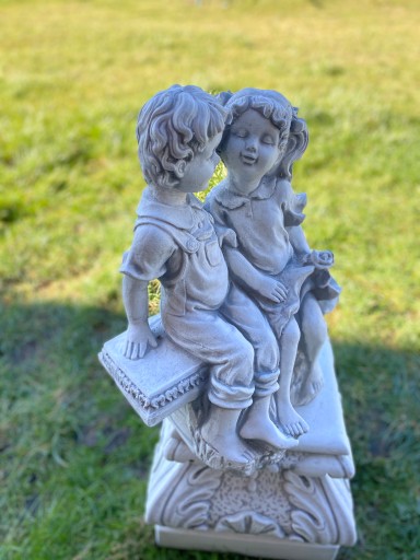 Садовая фигура мальчика и девочки на скамейке