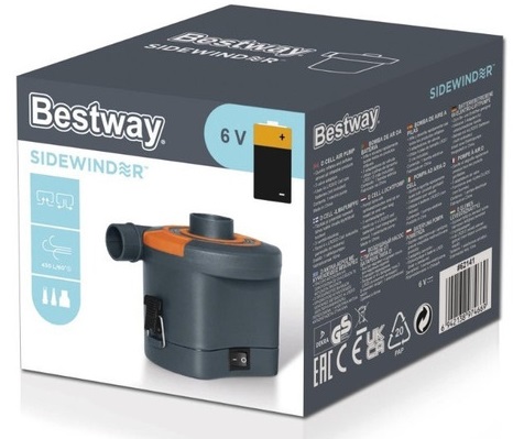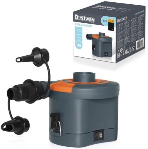 Pompa powietrza Bestway 62141 jest wyposażona w trzy uniwersalne adaptery zaworowe do pompowania i opróżniania materacy powietrznych, zabawek basenowych, mat kempingowych, pływaków i innych przedmiotów. Idealny do użytku w domu. Wykorzystuje 4 baterie LR20 / D (brak w zestawie).