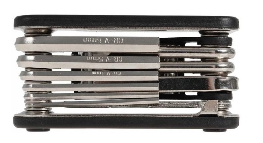 Zestaw zawiera 16 najpopularniejszych, najczęściej używanych kluczy stosowanych w kolarstwie