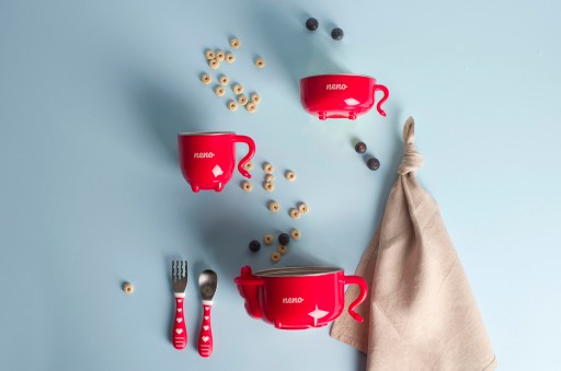 Termiczny i antypoślizgowy zestaw do jedzenia dla dzieci i niemowląt z funkcją podgrzewania/chłodzenia pokarmu i przyssawką antypoślizgową Neno Mucca.