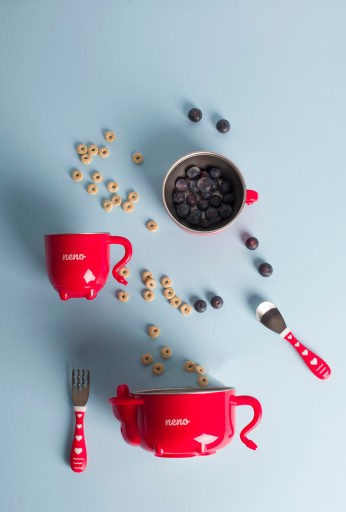 Zestaw miseczek i sztućców dla dzieci Neno Mucca