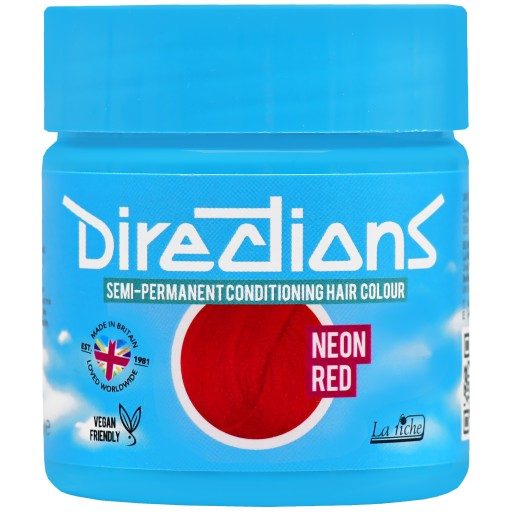 La Rich'e Directions to zmywalna farba o niesamowitym i intensywnym odcieniu. Pozwala na osiągnięcie oryginalnych kolorów. Jest to świetna propozycja dla osób ceniących niecodzienne stylizacje, mających odwagę i chęć wyrażania siebie poprzez wygląd. Idealnie sprawdzi się również na takie okazje jak karnawał, wakacje, czy inne specjalne wydarzenia. Produkt jest w pełni bezpieczny dla struktury włosa, ponieważ nie zawiera utleniaczy. Wszystkie tonery można ze sobą dowolnie mieszać dla uzyskania jeszcze bardziej szalonych efektów! Farba zazwyczaj utrzymuje kolor do 6-10 myć, jednak jest to uzależnione od struktury włosów, grubości, a także gęstości. Tubka o pojemności 88 ml powinna wystarczyć na pokrycie włosów o długości do ramion.
