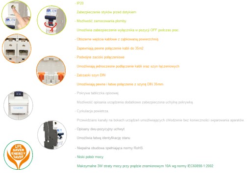 Spełnia normy - IEC/EN60898-1, IEC/EN60947-2