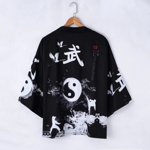 Duży znak (武) z tyłu Haori oznacza sztuki walki (w języku japońskim czytamy te Kanji jako "Bu", w języku chińskim Hanzi czytamy jako "Wǔ" - piszemy je łącznie z drugim znakiem 武术 - Wǔshù).