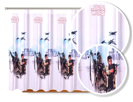 Na tej aukcji mam do zaoferowania firanę metrażową na woalu z postaciami z popularnego filmu STAR WARS.