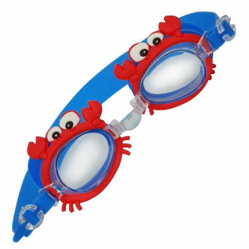 Piękne okulary dla dziewczynki i chłopczyka, stworzone dla prawdziwych fanów wodnej zabawy. Okularki w niebieskim kolorze z akcentem uroczego czerwonego krabika.