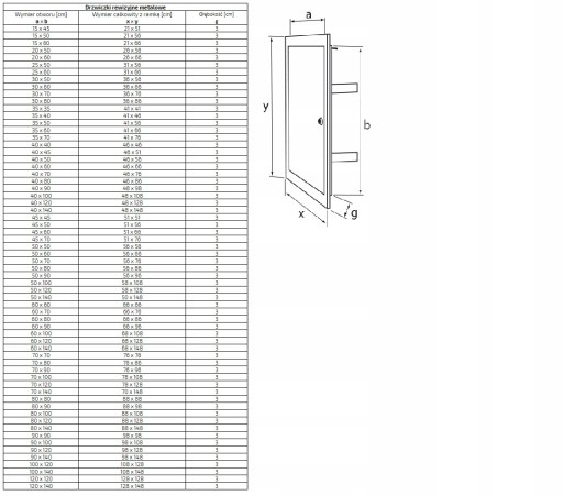 Drzwiczki rewizyjne przeznaczona są do zabudowy miejsc wymagających wielokrotnych kontroli, takich jak liczniki wody, zawory przyłączeniowe, rozdzielnie elektryczne, teletechniczne oraz skrzynki rozdzielcze.