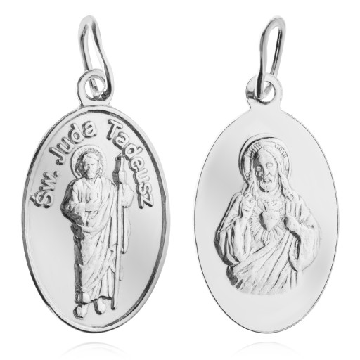 Z przodu medalika wizerunek Świętego Tadeusza oraz grawer :