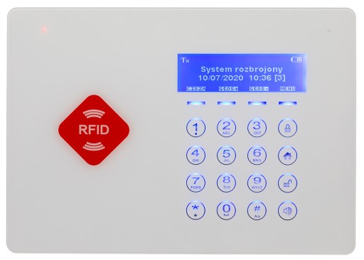 Służy do uzbrojenie i rozbrojenie alarmu. Wystarczy przesunąć pastylką przy centralce w miejscu oznaczonym RFID.