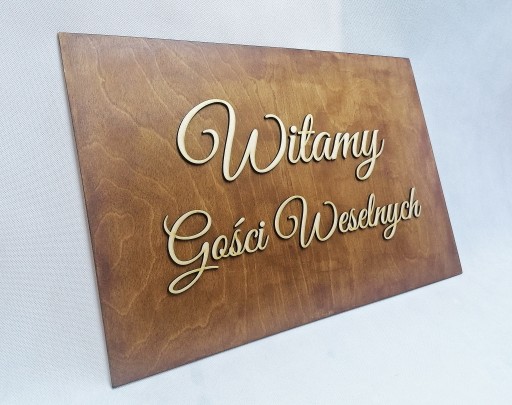 Przekroczenie progu Sali weselnej w dniu ślubu to ogromny stres. Przywitaj swoich gości prostym ale jak że znaczącym słowem „Witamy gości weselnych” i zaproś ich do środka. Po weselu tablicę można wykorzystać jako ozdoba mieszkania, zachowując wspomnienia na dłużej, przyczepiając do niej zdjęcia. Nasze tablice wykonane są w staranny sposób w technologii laserowej, ręcznie malowane. Na życzenie klienta dodajemy imiona pary młodej.