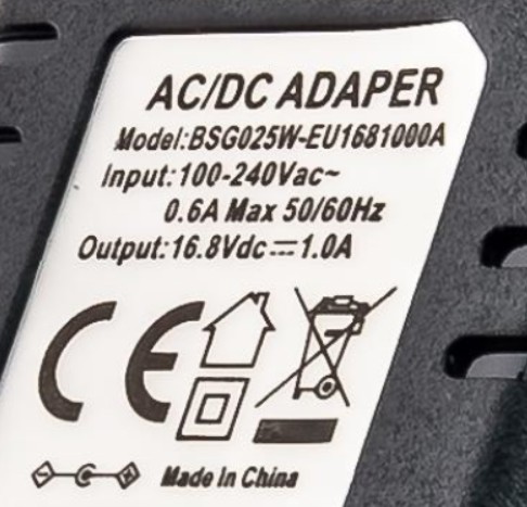 - Na wyjściu: DC 16.8V. 1A.