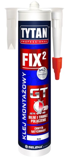 Tytan Professional FIX² GT jest to klej na bazie najnowszej generacji polimerów hybrydowych o szybkim chwycie początkowym i przyspieszonym czasie utwardzania. Tworzy bardzo wytrzymałe połączenie, które można obciążyć już po około 30 minutach, a pełną wytrzymałość osiąga już po około 3 godzinach. Powstała spoina doskonale tłumi wibracje, jest odporna na zmienne warunki atmosferyczne, promieniowanie UV i rozcieńczone chemikalia.