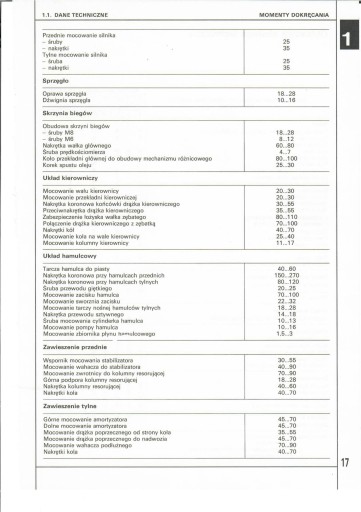 Opisy napraw uzupełniono danymi technicznymi i regulacyjnymi, tablicami momentów dokręcania, okresowych obsług technicznych, zawierającymi typowe niesprawności oraz schematami elektrycznymi.