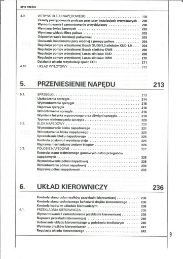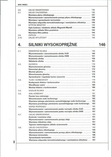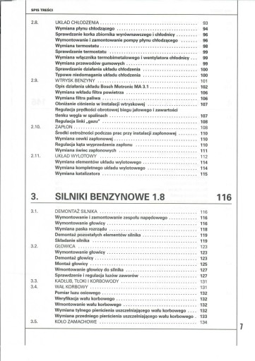 Książkę uzupełniono szczegółowymi danym technicznymi, tabelą momentów dokręcania oraz bardzo licznymi schematami elektrycznymi.