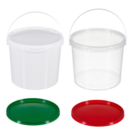 WIADRO OKRĄGŁE 5L BIAŁE LUB BEZBARWNE Z POKRYWKĄ BIAŁĄ, BEZBARWNĄ, CZERWONĄ LUB ZIELONĄ