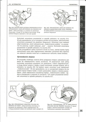 Opisy napraw uzupełniono danymi technicznym i regulacyjnymi, tablicą momentów dokręcania oraz wieloma schematami elektrycznymi.